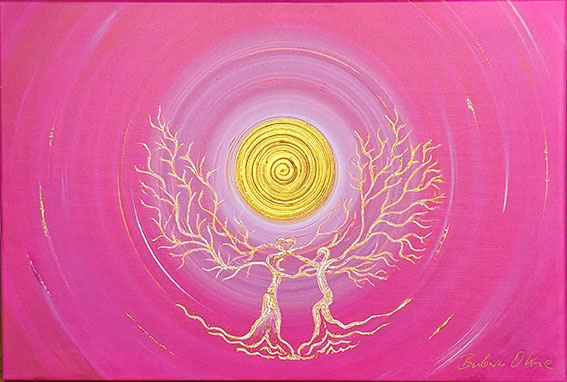 Der Leinwanddruck Ist mit Acryl und Gold bearbeitet und aufgespannt auf einen